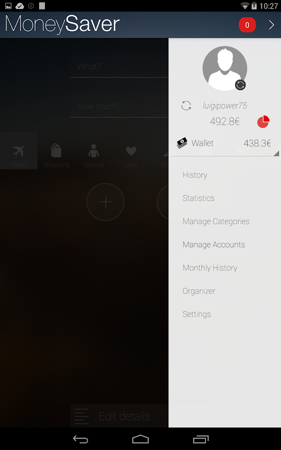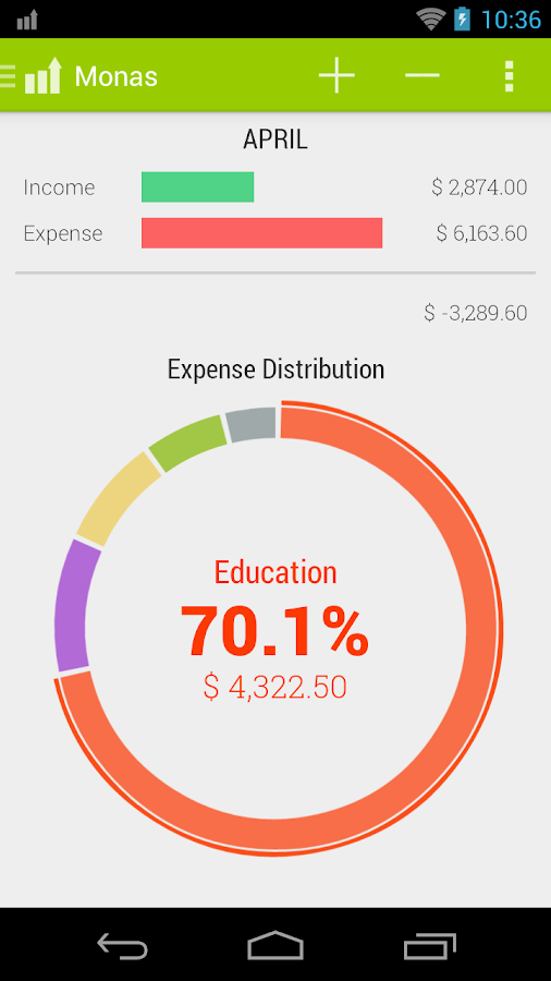O Monas possui um layout clean, bonito e funcional (sem propagandas!). É bem fácil de mexer e o que você tem que ter em mente é que o + adiciona receita e o - adiciona despesas. Você pode adicionar categorias aos seus gastos para ter um noção melhor sobre em que você gasta mais.