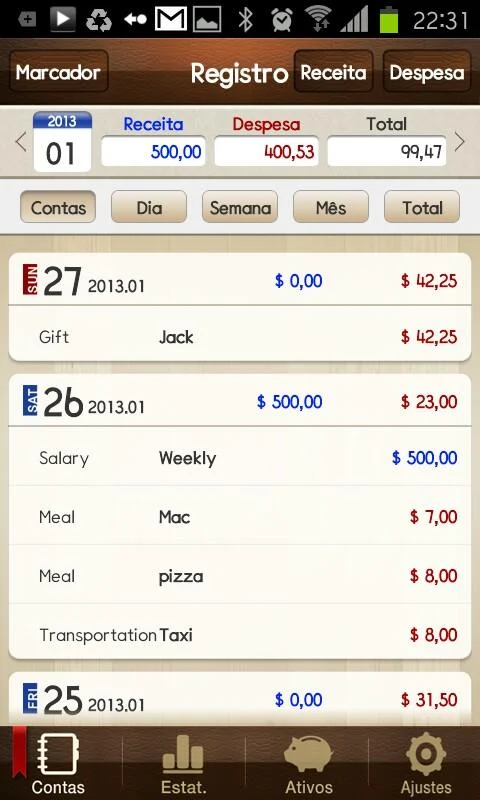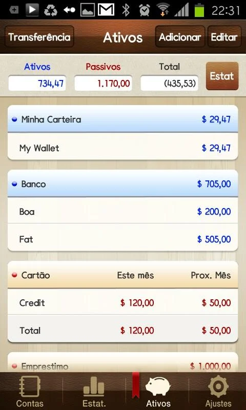 Apesar de ter sido o primeiro aplicativos que baixei e ter usado ele por bastante tempo ainda fico meio confusa por que ele mistura um pouco as carteiras no total de receita e despesas me deixando perdida no quanto eu tenho em cada um.